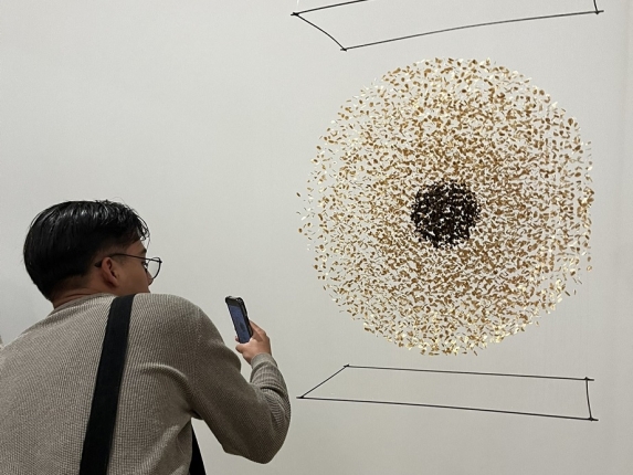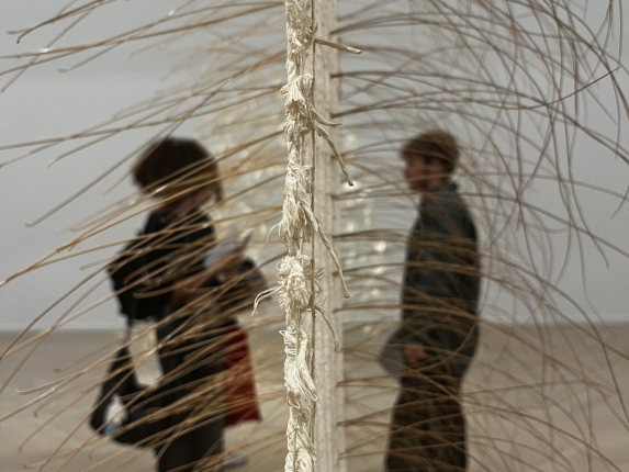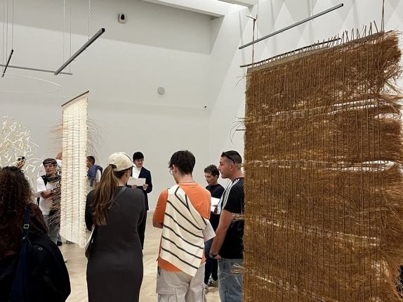 Diseinuko 2. mailako ikasleek aukera izan dute “Tejer lo efímero: texturas, repetición, geometría, circularidad” erakusketa bisitatzeko, María Cueto artistarena.